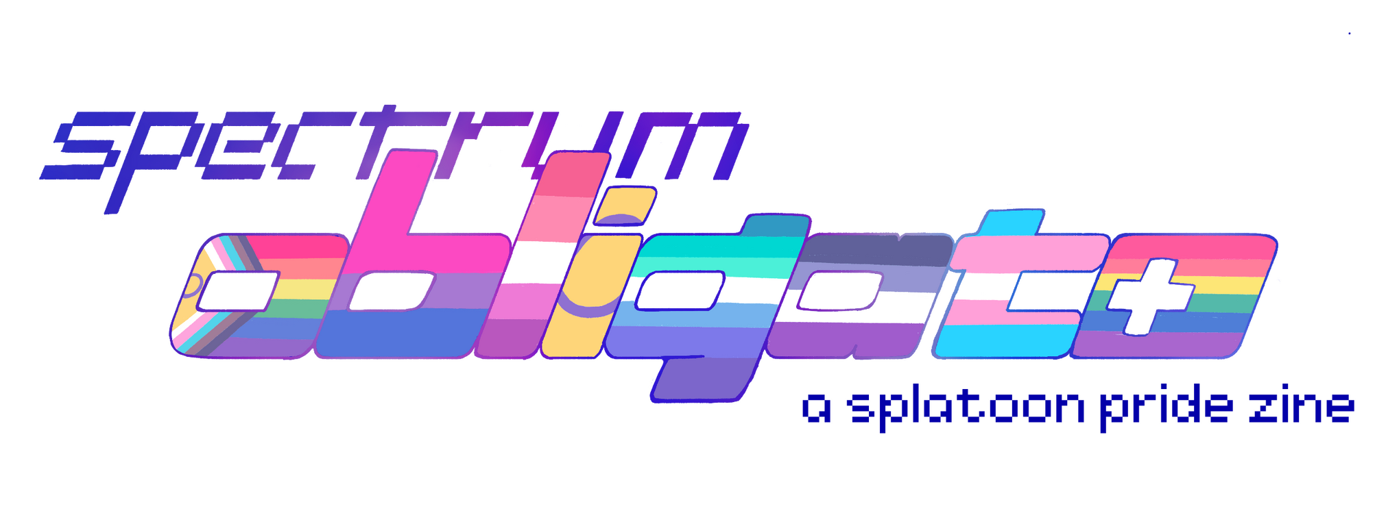 Spectrum Obligato is a fanmade Splatoon pride zine uplifting LGBTQIA+ creators and media in the Splatoon community!